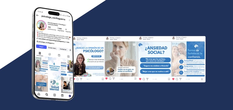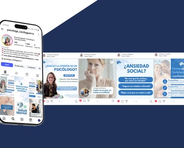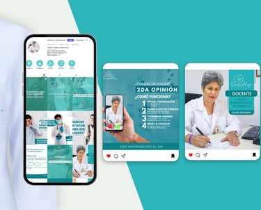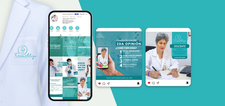 Diseño de logotipo y piezas gráficas para redes sociales, manteniendo coherencia visual y claridad en la comunicación del perfil profesional.
